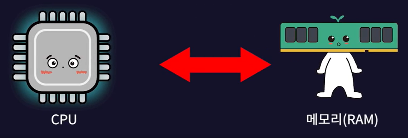 - 폰 노이만은 이러한 불편함을 해결하기 위해 CPU와 메모리를 두고 이들 사이를 버스로 연결했다.