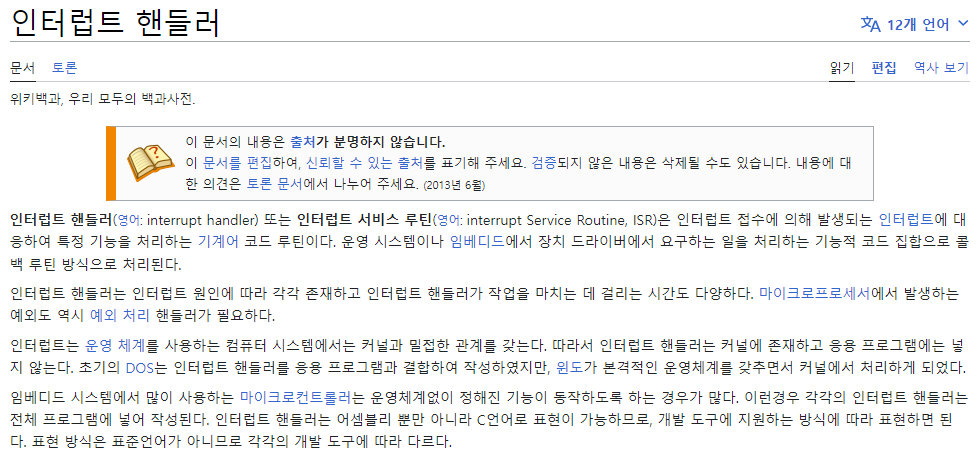 - Interrupt Service Routine은 인터럽트 핸들러 라고도 한다.