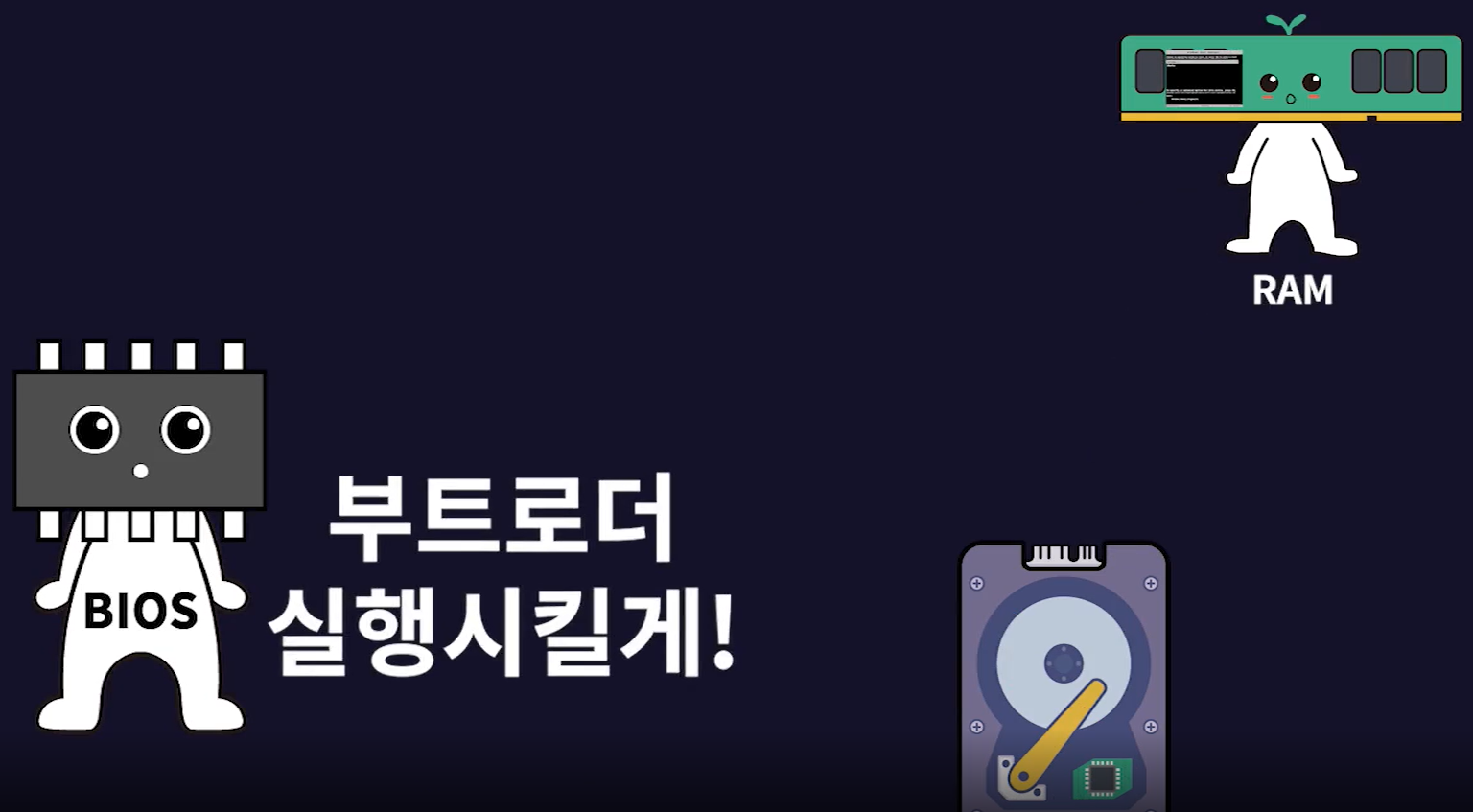 3-2. 이상이 없다면 하드디스크에 있는 마스터 부트 레코드에 저장된 부트로더를 메모리로 가져가서 실행한다.