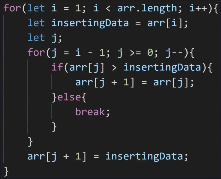 - if(arr[j] > insertingData) --> 이 조건이 false가 된 것