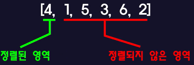 - 이후 정렬된 영역과 정렬되지 않은 영역은 아래와 같다.