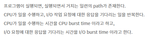 - 만약 프로세스에 I/O 작업이 있으면 CPU는 I/O 작업이 끝날 때까지 쉬고 있기 때문에 CPU 사용률도 떨어진다.