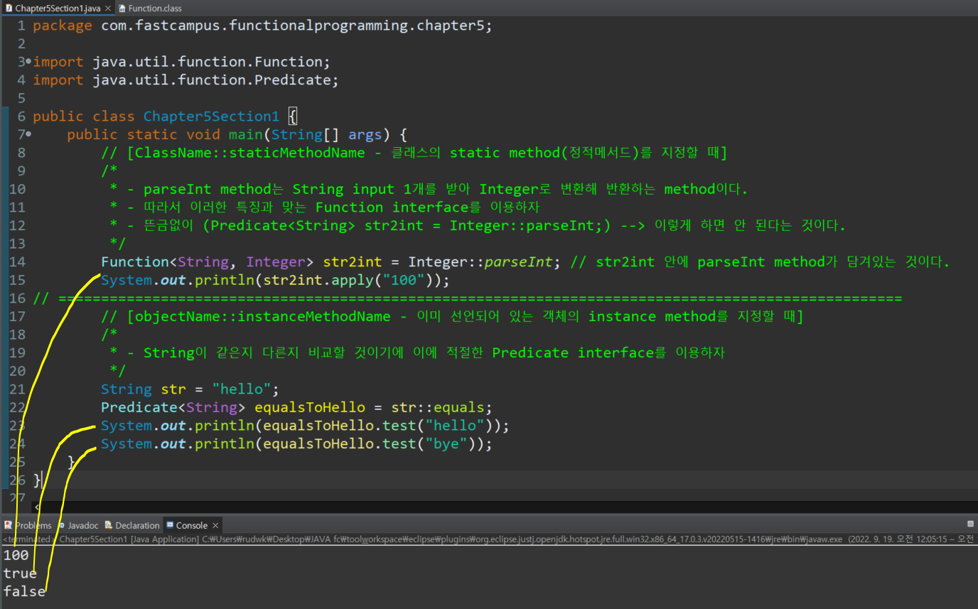 * - 뜬금없이 (Predicate<String> str2int = Integer::parseInt;) --> 이렇게 하면 안 된다는 것이다.