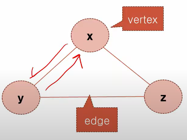 - 간선의 방향이 있기 때문에 간선(x, y)는 간선(y, x)와 서로 다르다.