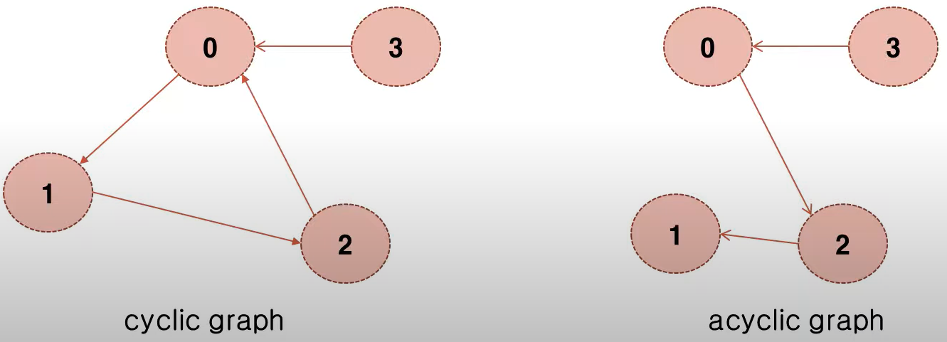 - 순환 그래프 : 하나 이상의 사이클을 갖는 그래프