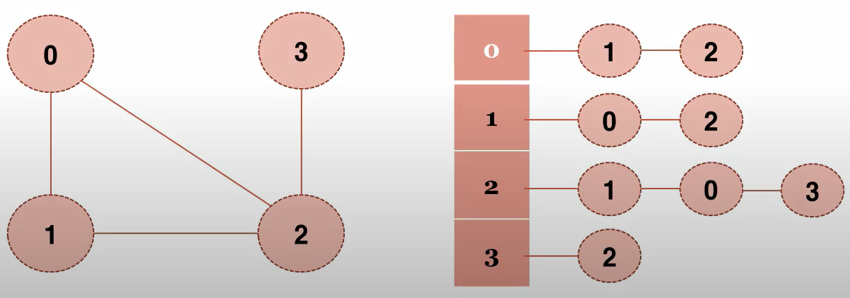 - 위 그림을 기준으로 정점이 4개이기에 (length = 4)인 배열을 선언한 후 각 정점에서 갈 수 있는 정점들을(= 간선들을) 연결리스트로 묶는다.