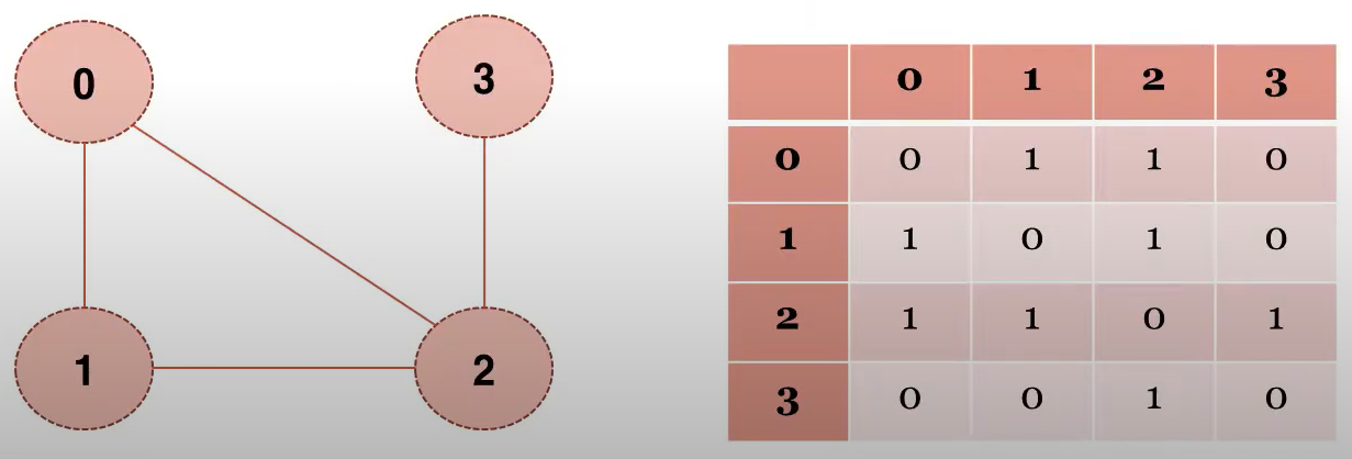 - 위의 그림은 정점이 4개이기에 (4*4 = 16바이트)의 메모리를 할당한 상태이다.