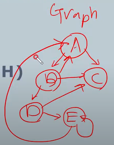 - Graph는 양방향 이동이 가능하다.(다양한 경로 존재) ex) A노드에서 E노드로 가는 길은 여러가지