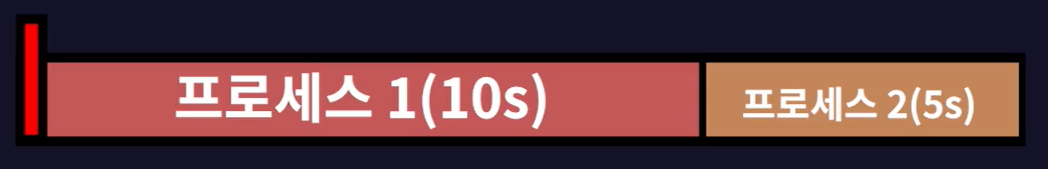 - P2는 P1이 실행되는 10초를 기다렸기에 P2의 (대기시간 = 10초)이다.