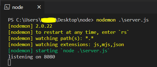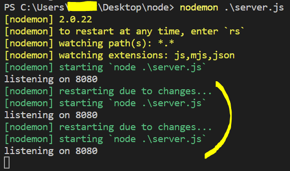 - 앞으로는 파일을 저장할 때마다 nodemon이 알아서 서버를 새로 시작해줄 것이다.