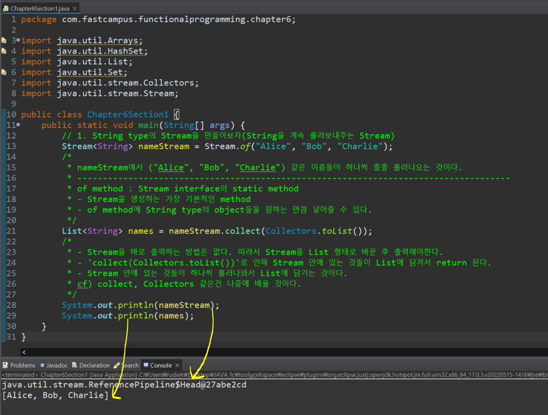 * - nameStream Stream 안에 있는 것들이 하나씩 흘러나와서 names List에 담기는 것이다.