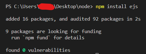 - 터미널에 아래의 명령어를 입력해 ejs를 설치해보자