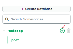 - 아래 사진 속 todoapp 데이터베이스에 있는 (+) 버튼을 누르면 collection(파일)을 하나 더 만들 수 있다.
