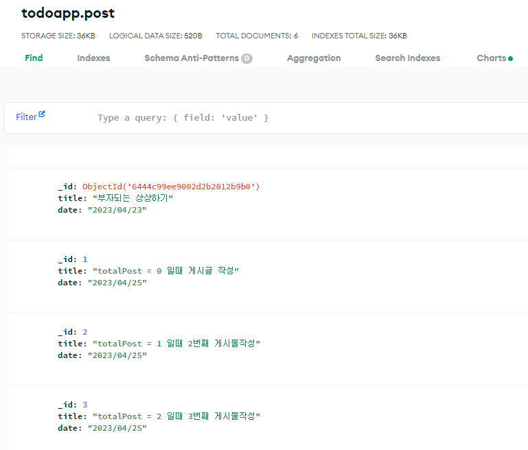 - counter collection 내의 totalPost 값을 수정하고 싶으면 아래와 같이 코드를 짜면 된다.