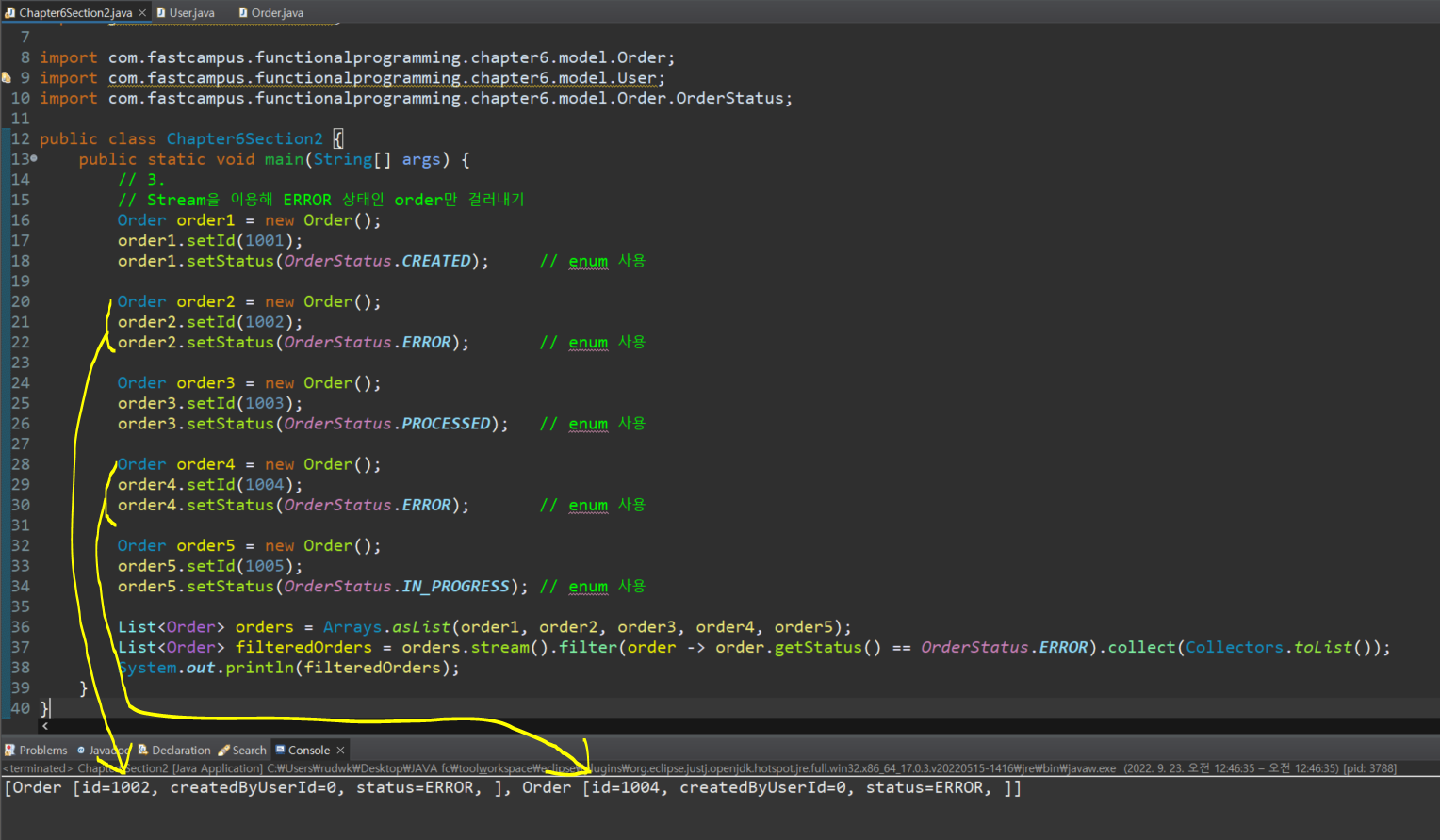 2-2. Stream을 이용해 ERROR 상태인 order만 걸러내기