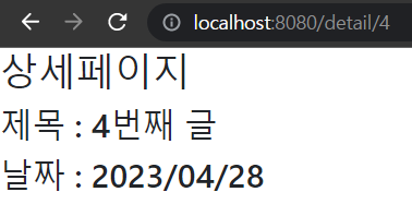 사용자가 /detail/4 에 접속하면 4번 게시물 데이터를 보여준다.