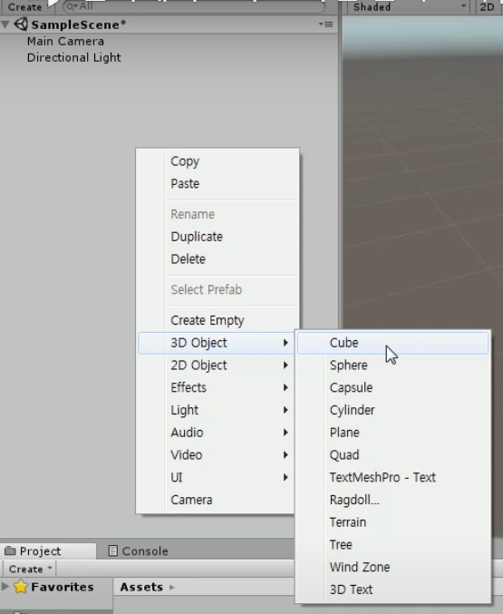 2. Hierachy(계층구조) : 오브젝트 확인 및 생성