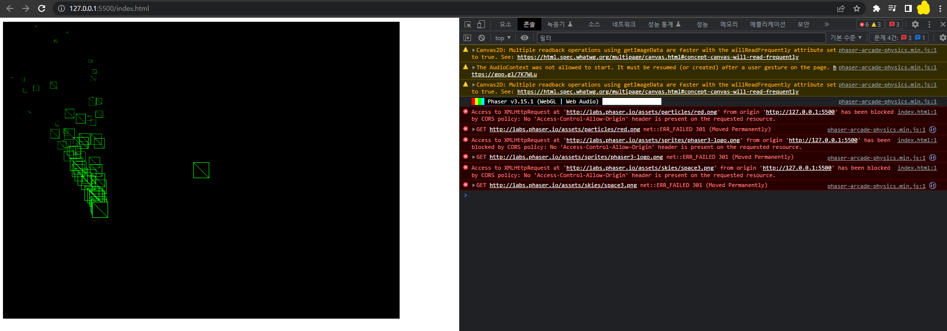 - 이미지가 깨져보이는건 아마 phaser 홈페이지가 리빌딩중이어서 그런 것 같다.(추측임)