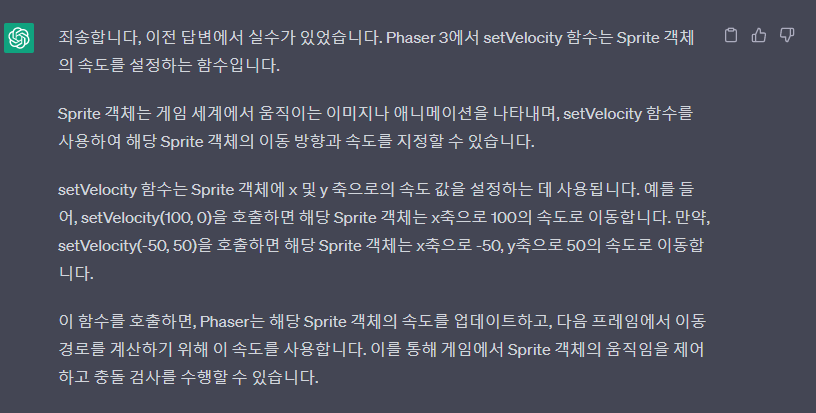 // Sprite 객체의 속도를 설정하는 함수 : (좌우, 위아래) 움직이는 속도