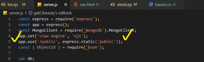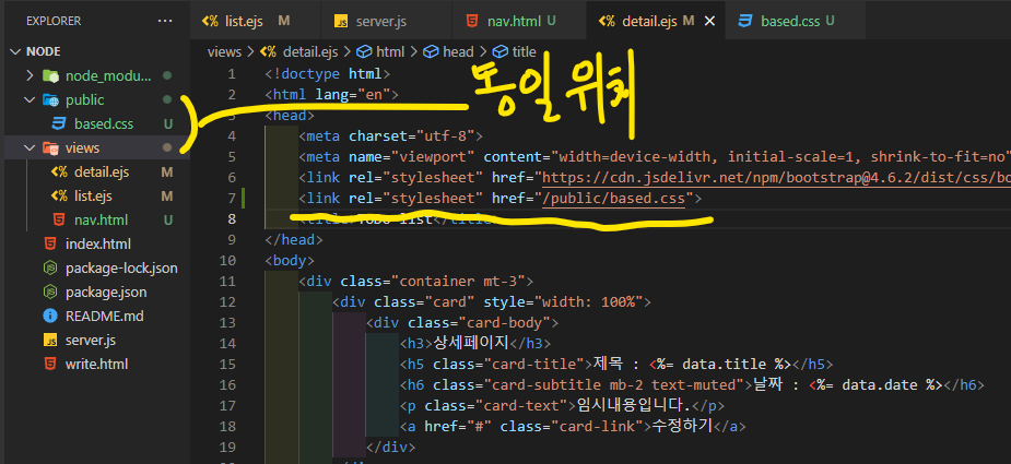 - 다른 ejs 파일에도 동일하게 하면 된다.