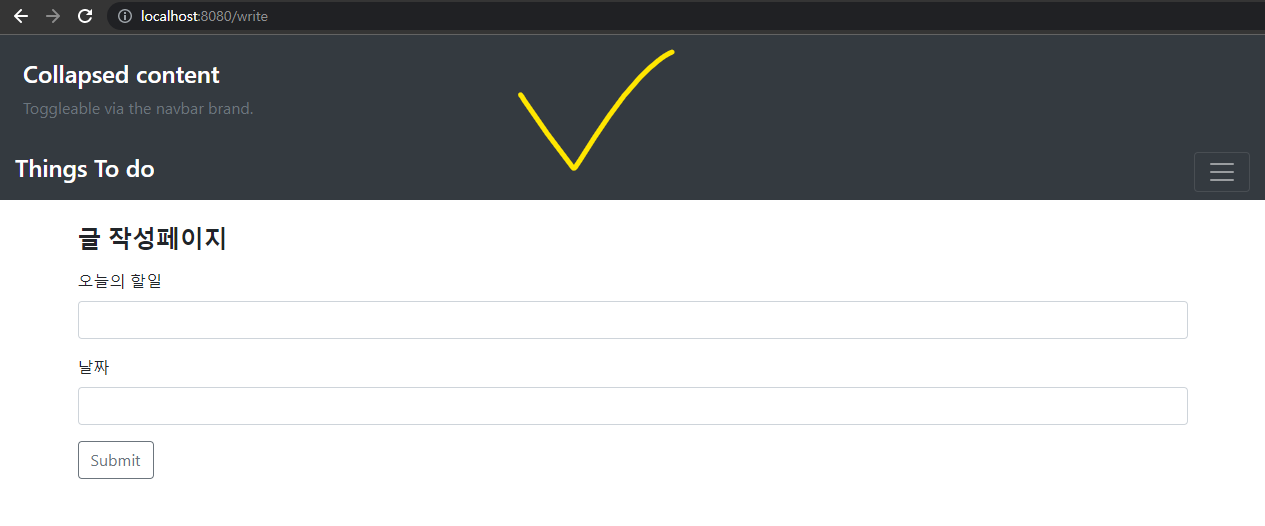 (detail.ejs, 디자인은 Bootstrap에서 가져왔다.)