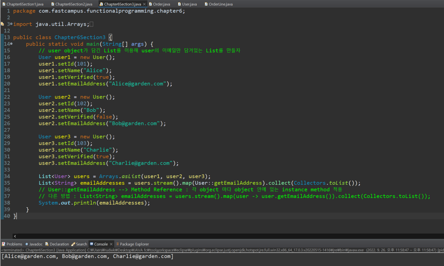 // 다른 방법 : List<String> emailAddresses = users.stream().map(user -> user.getEmailAddress()).collect(Collectors.toList());