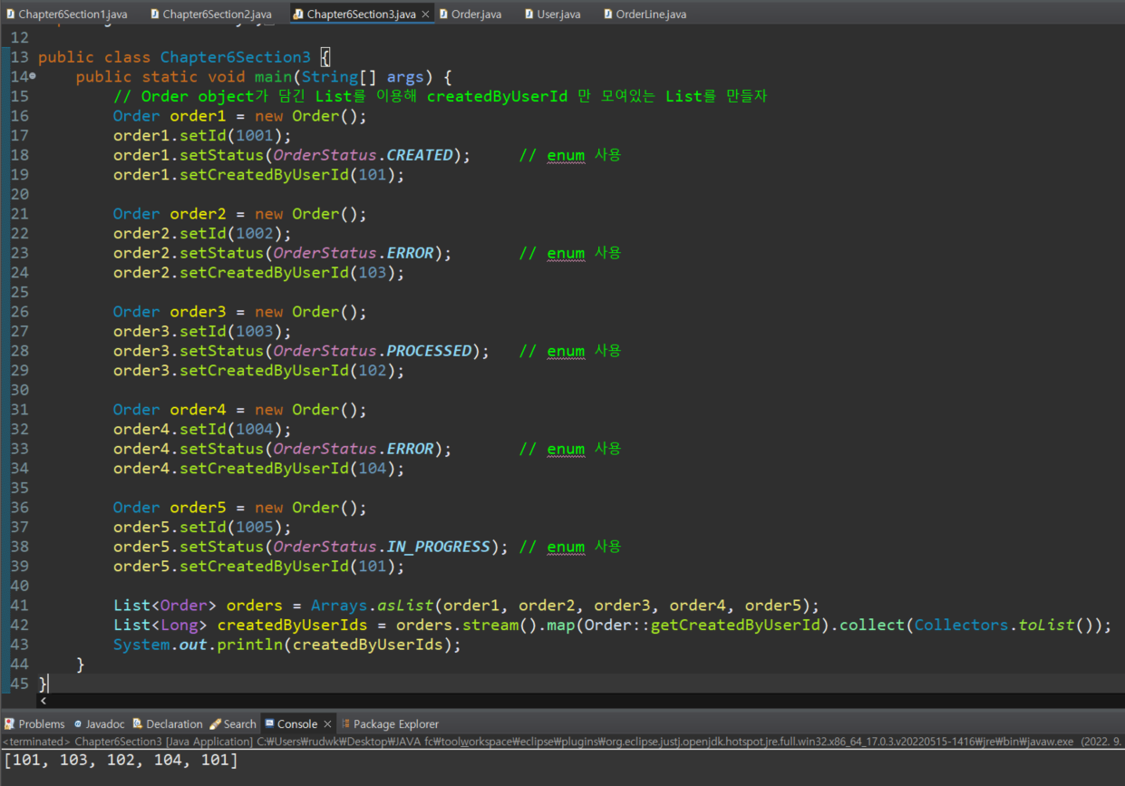 2-2. Order object가 담긴 List를 이용해 createdByUserId 만 모여있는 List를 만들자