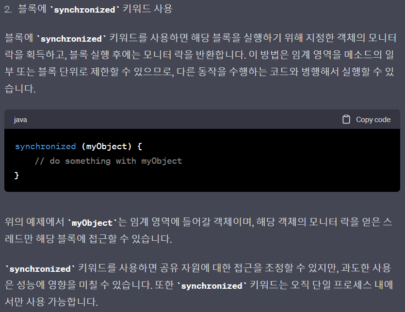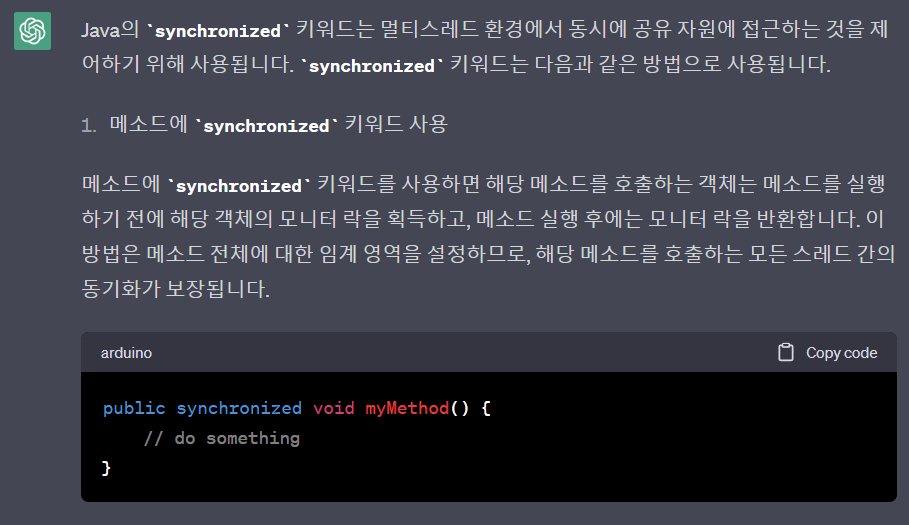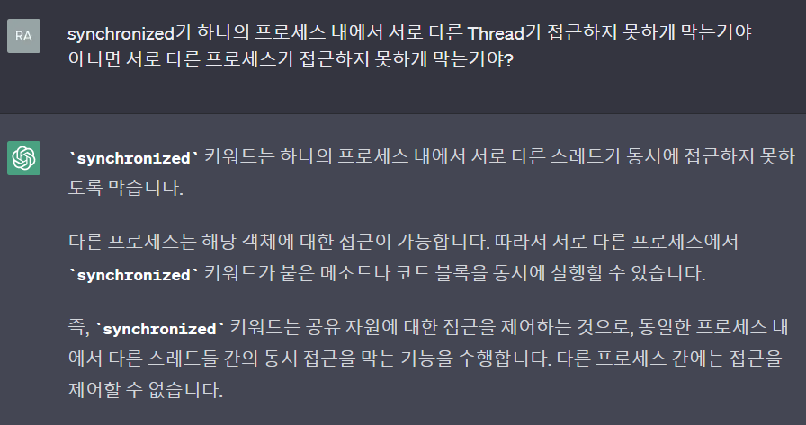 ● chatGPT한테 synchronized 물어보기
