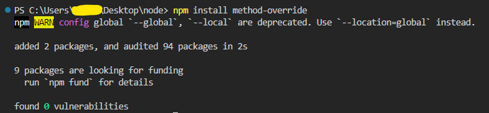 1. 터미널에 아래의 명령어를 입력해 method-override 설치