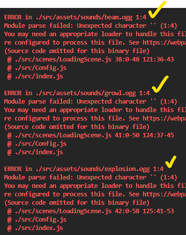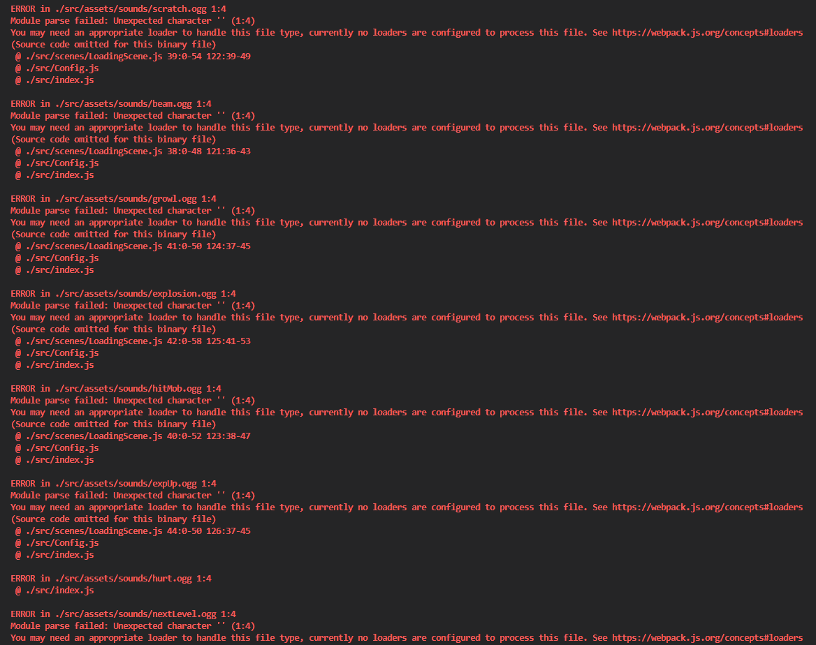 - 이것은 webpack 때문 발생하는 오류인데 정확히는 .ogg 확장자 파일을 처리하지 못 해서 그런것이다.