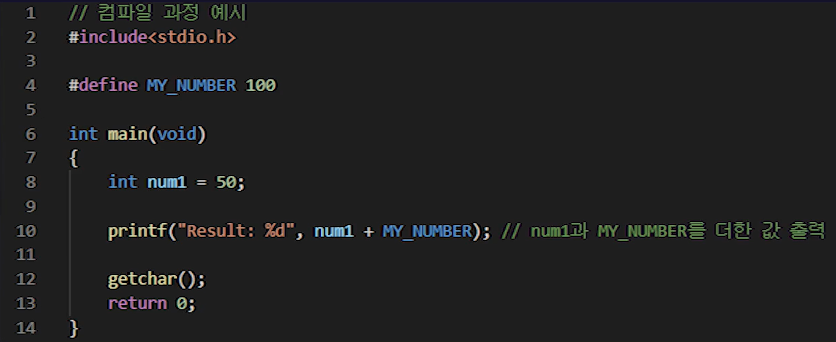 - 4번 라인에서는 숫자 100을 MY_NUMBER로 치환시켰다.(이를 매크로라고 부른다.)