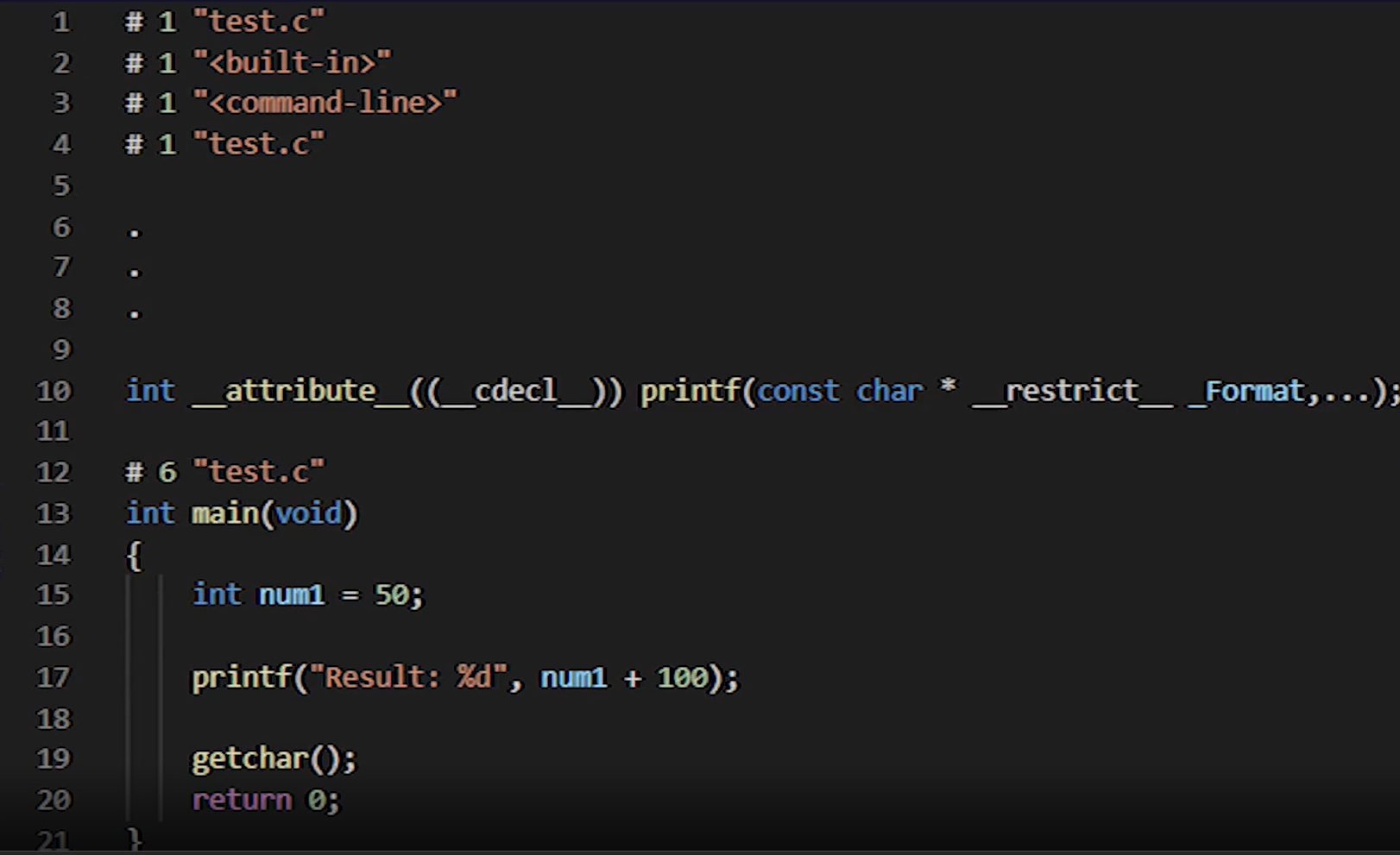 2-3. 또한 코드에 있는 모든 주석 부분은 제거된다. 전처리기 작업 결과는 아래와 같다.
