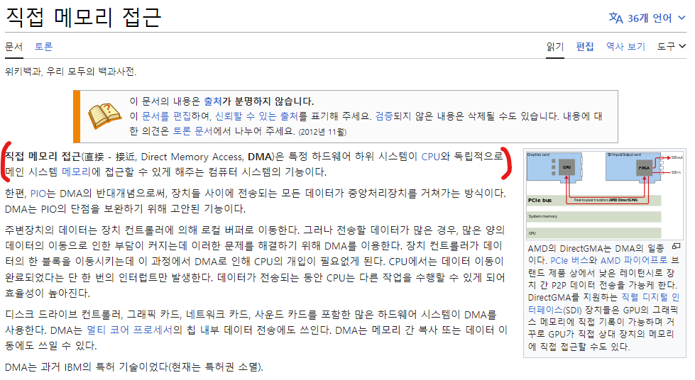 cf) DMA = Direct Memory Access(직접 메모리 접근)