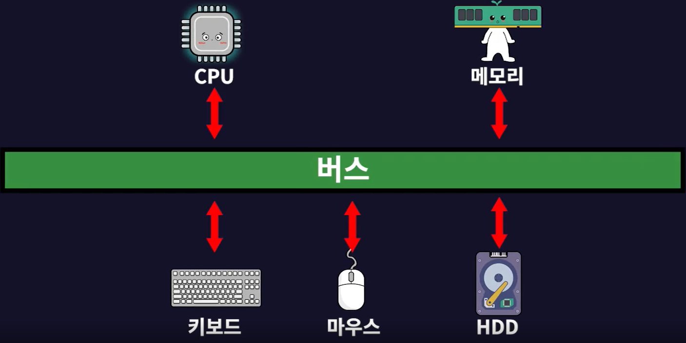 - 주변장치들은 메인보드 내의 버스로 연결된다고 했다.