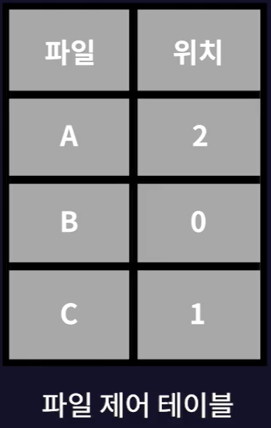 - 파일 시스템은 파일 정보를 파일 테이블로 관리하는데 여기에는 파일이 시작하는 블록의 위치 정보도 담겨있다.