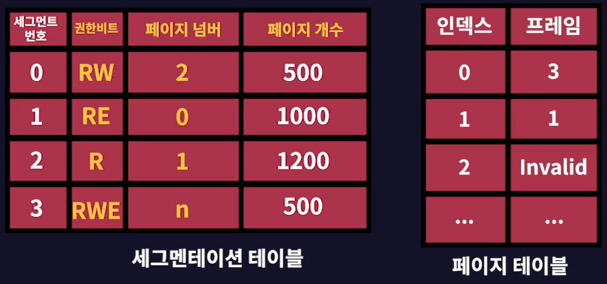 - 세그멘테이션은 가변 분할 방식이기에 코드 영역, 데이터 영역, 힙 영역 등을 세그먼트로 나눠서 관리할 수 있다.