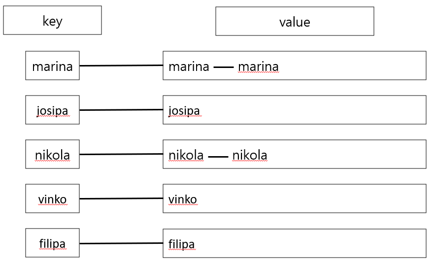 - 마라톤에 참가한 선수 명단이 아래와 같을 때 각 선수의 이름을 key, value 또한 각 선수의 이름으로 했다.