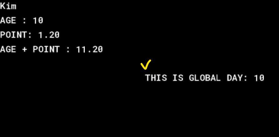 - 만약 objText에서 선언한 전역변수인 day 변수가 Assign Value(인스턴스 변수)나 Declare Temp(지역변수, 임시변수)라면 scope를 벗어나기에 에러가 발생할 것이다.