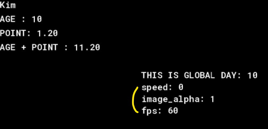 - 인스턴스의 좌표, 속도, 스프라이트 알파값, 게임 프레임 등 다양한 내장 변수가 있다.