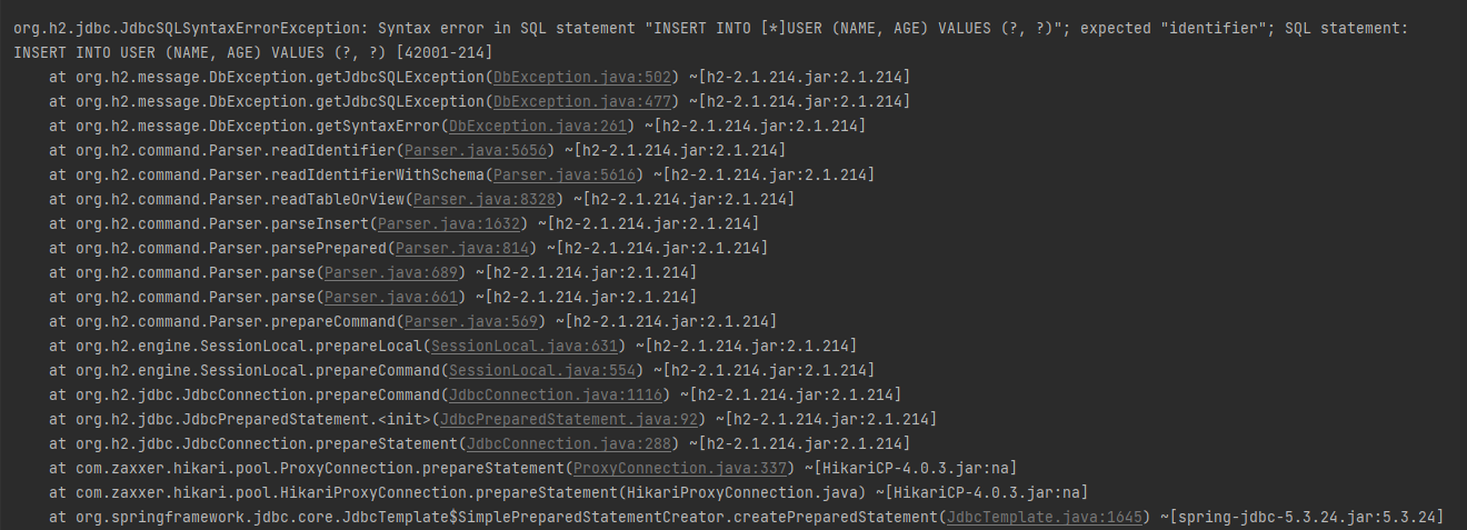 org.h2.jdbc.JdbcSQLSyntaxErrorException