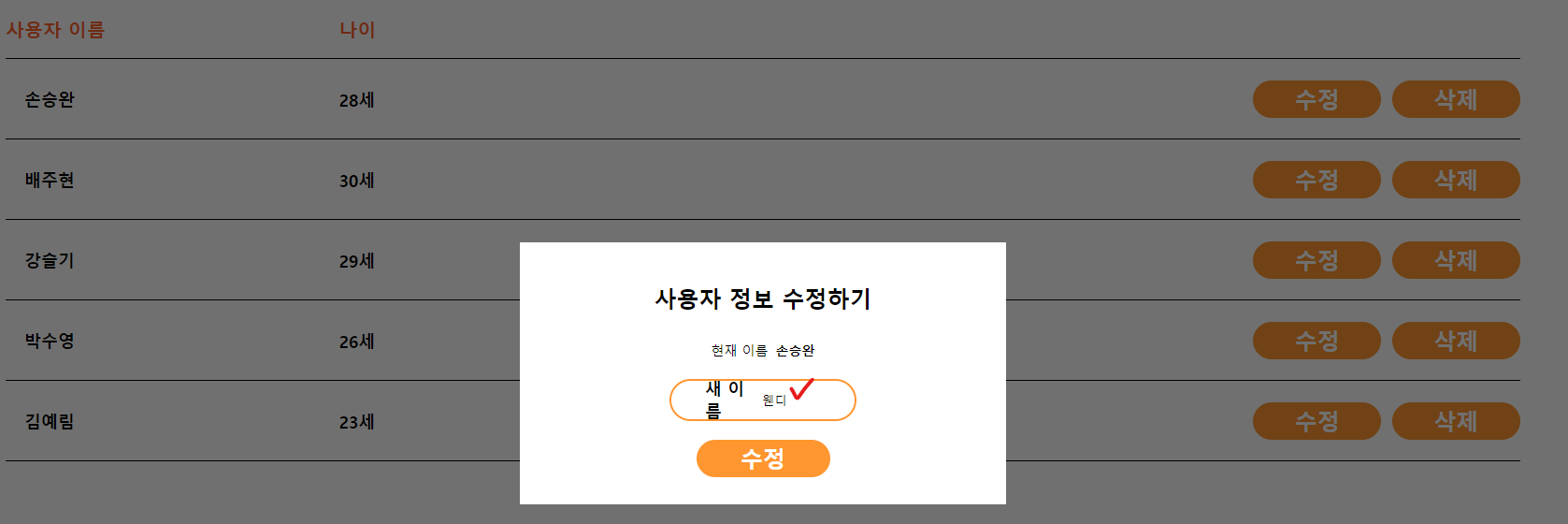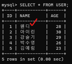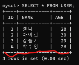 3. 쿼리 → 문자열 name(삭제할 사용자 이름)