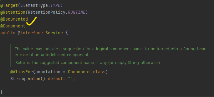 - 즉, 숨어있는 @Component Annotation 덕분에 @Controller, @Service, @Repository 같은 Annotation 들이 자동으로 감지되어 Spring bean 으로 등록됐던 것이다.