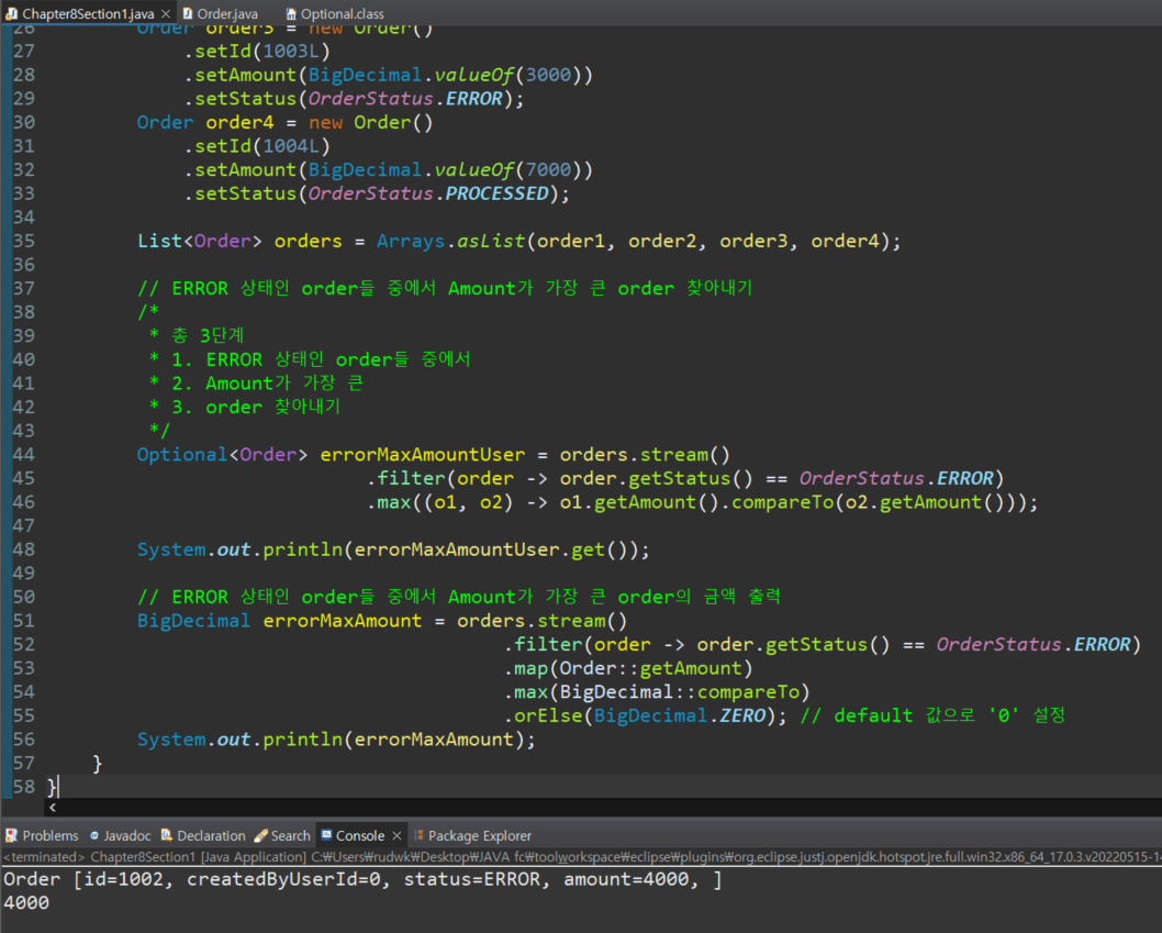 Optional<Order> errorMaxAmountUser = orders.stream()