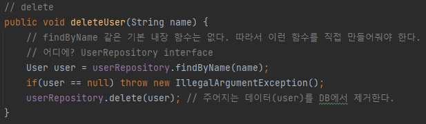 // findByName 같은 기본 내장 함수는 없다. 따라서 이런 함수를 직접 만들어줘야 한다.