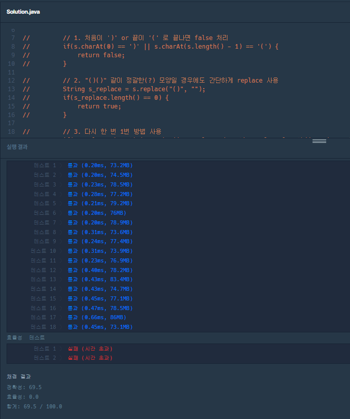- 근데 역시나 문제는 풀리지 않았다. 근데 또 놀라운건, 대부분의 문제를 통과했다는 것이다.