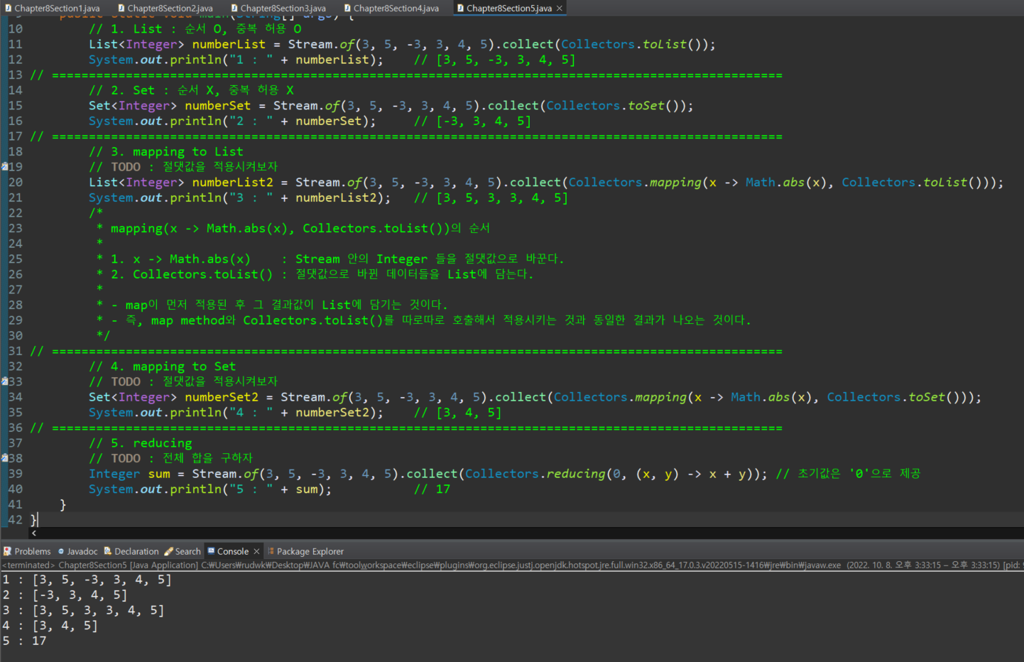 * mapping(x -> Math.abs(x), Collectors.toList())의 순서