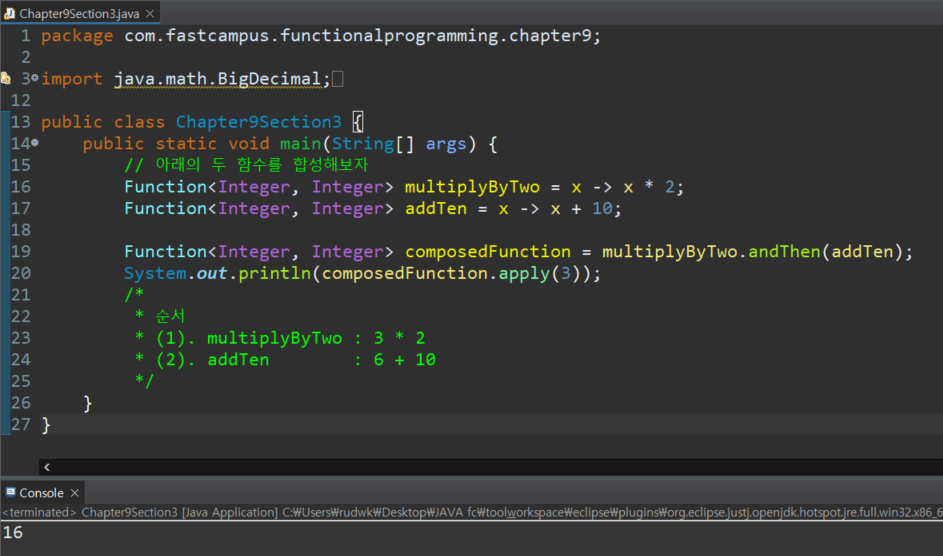 Function<Integer, Integer> composedFunction = multiplyByTwo.andThen(addTen);
