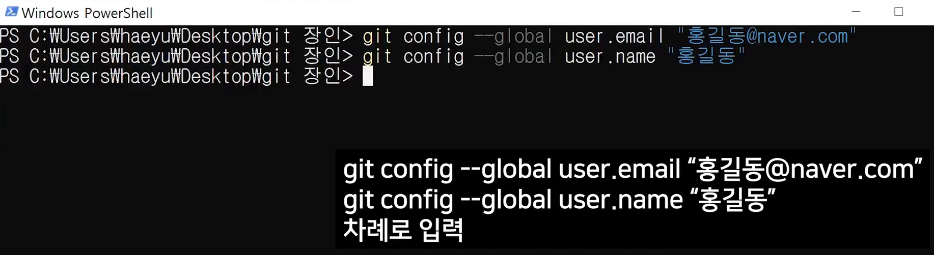 - 해당 코드는 누가 지금 git을 쓰고있는지 구분하기 위한 간단한 아이디 등록 같은거다.