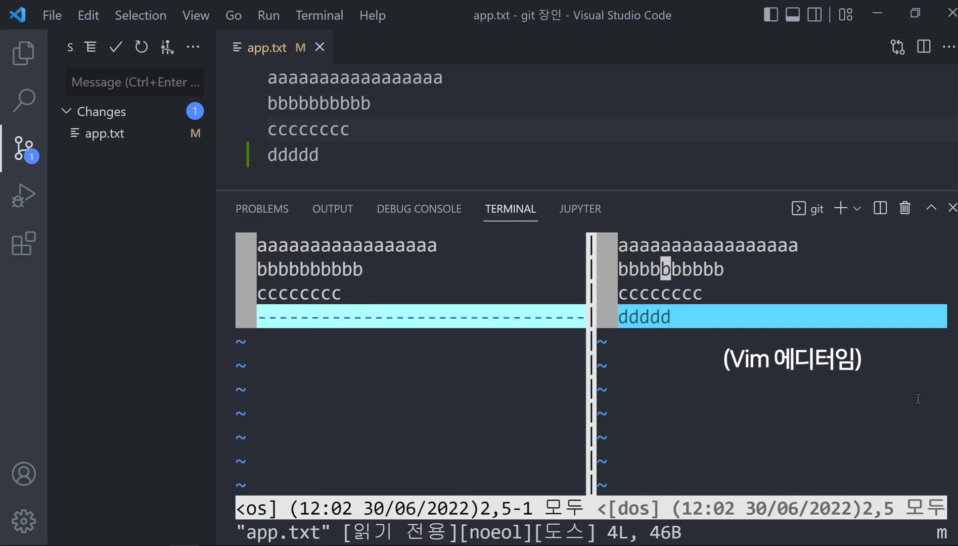 - 사실 Vim 에디터와 터미널의 한계로 difftool도 그렇게 편리하진 않다.