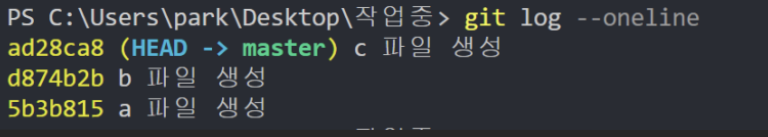 - 위 사진처럼 a, b, c 파일을 각각 만든 후 생성 때마다 commit을 했다고 해보자